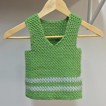 This is a PDF crochet pattern for a child's vest sizes 6, 12, 18, 24 months - adjustable for custom measurements. The vest can be made in any length/size you desire.