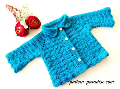 What a sweet little sweater. A pretty combinations of stitches makes this one a must have. Keep your little girl warm in style.