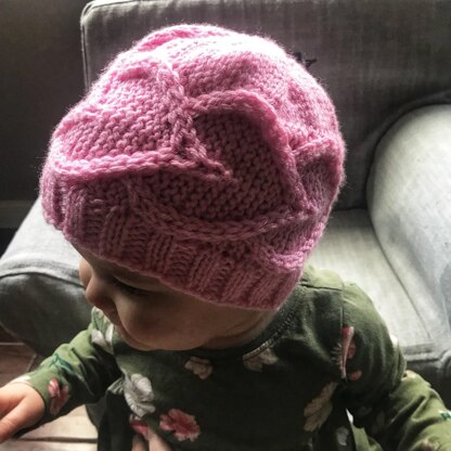 I designed this hat for my daughter as a Valentine's seasonal hat, but hearts are really always in season, so she doesn't have to put it away after the holiday. The pattern features my favorite heart cable that I've been putting on everything since college. The hat features a horizontal heart cable, a ribbed brim, and a simple stockinette crown. The hat can be worked in sizes baby through adult, but the cable size does not change so the cable will be more prominent on the baby sizes and less prominent on the adult sizes.