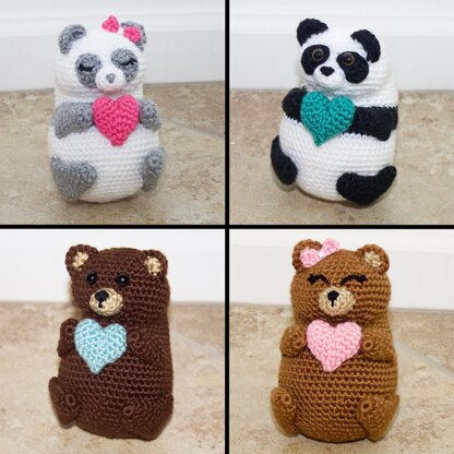This sweetheart panda & teddy bear pudgy pal pattern will help you create the perfect stuffed bear just in time for valentine's! The pattern includes instructions to make all four versions of the bear pudgy pals shown. Additionally, options are provided to make your bears with either open or closed eyes and different colored hearts. If you want a quick project make the bear pudgy pals. Above all, with these detailed instructions, even those with little crochet experience can find success creating their own masterpieces!