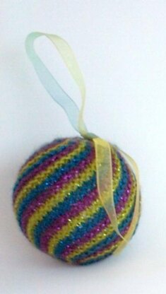 Fingering weight yarns produce a nice ornament for your Christmas decorations. Substitute heavier yarns and larger needles to make toy balls or household decorations.