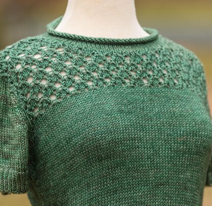 Sylvia is intended to fit with zero ease at the bust and slight ease through the waist and hips for a fitted, retro silhouette. Twisted rib and eyelet lace add to the vintage feel, and a simple rolled stockinette collar is used for a modern touch. Knit in a soft silk and wool yarn, I imagined this sweater to be practical enough to wear daily but feminine enough to be distinctive.