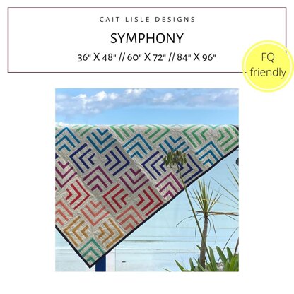 Inspired by bright summer colours working in harmony, the Symphony Quilt is a fresh take on the traditional quarter log cabin block and is suitable for confident beginners. \n\nThe downloadable pattern includes:\n\nInstructions for baby (36” x 48”), throw (60” x 72”) and double (84” x 96”) sized quilts\nCutting instructions\nClear directions and diagrams on piecing the blocks and assembling your quilt\nColouring pages to help you choose your fabric layout and colour scheme\nFat quarter friendly\n\nShare your projects with #SymphonyQuilt and #caitlisledesigns!