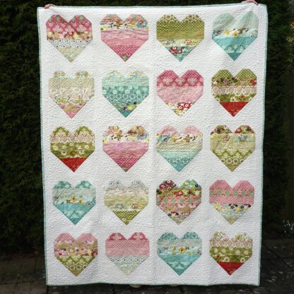 This is a modern quilt pattern using Jelly rolls, but you can easily use yardage if you prefer. It is an easy quilt pattern suitable for a beginner. The pattern includes 5 sizes from Baby through to King size.