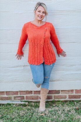 Talbot Cardigan is an airy, asymmetrical cardigan that combines stockinette and lace in a breezy, layering piece. An all-over lace design below the bustline creates a soft, delicate garment that is worked in one piece, flat to the armholes, then divided and joined at the shoulders with three-needle bind off. The overlapping fronts create a slant with off-centered buttons. The division of lace and stockinette provide a clean working area to seam the set-in sleeves. I love a good set-in sleeve. It gives such a polished look to a garment and fits comfortably.