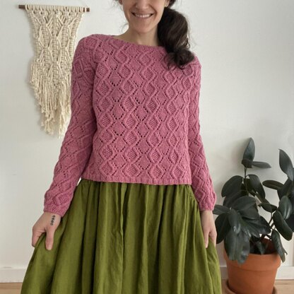 Tamara is a modern take on a classic cabled sweater. Knit from the bottom up in the round it features an allover pattern of diamond cables with lace and textured stitches. The boxy shape and drop shoulder style make for a comfy fit and the loose sleeves with cinched in cuffs give a more modern feel to the design. The neckline and sleeve cuffs feature a tubular bind off. Knit up in A Wing & A Prayer Farm’s The Supremes yarn, a woolly, soft farm yarn that is perfect for showcasing the intricate cables, lace and texture!