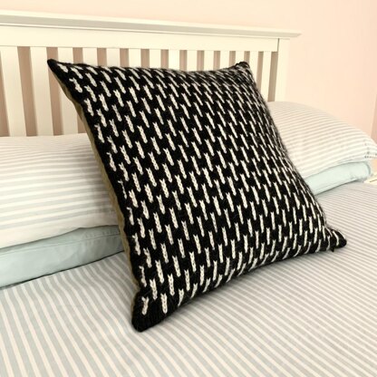 This is a knitting and sewing pattern to make your own cushion cover. It has a knitted front cover and a fabric back with a zipper opening so you can fill it with a cushion pad. You can also do an Ikea hack if you don't want to make the fabric part of the cushion cover - this is all explained in the pattern.
