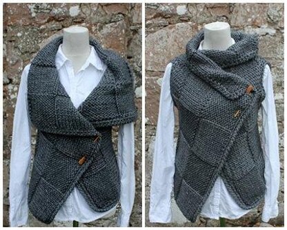 Big Square Wrap is full of sumptuous texture and cosy comfort.. Features big squares of different stitch, is knit sideways, no seams, finished with crochet edging. Can be worn open or closed with a pin or belt.. For different look, you can also flip it upside down (picture 4)