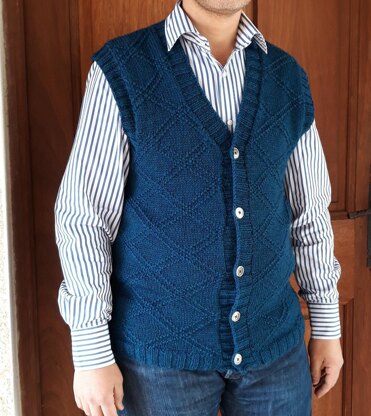 Tartanesque is a smart and cool sleeveless vest for men, buttoned on the front. It is covered by a textured pattern, which makes me think to the scottish tartans.