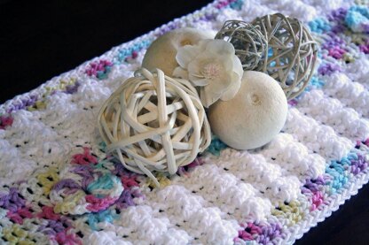 This textured table runner can be worked up in a solid color or multiple colors to match your home decor. If you hate sewing pieces of your projects together, you're in luck! This table runner is worked in one piece!