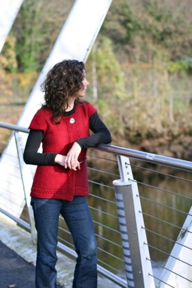 The unusual construction of this cardigan makes this a very fun knit. Worked from side to side starting at the center of the back, curvy short row hip shaping, clever side joining and short row sleeve caps can introduce you to several new techniques. Vertical accent rows add visual interest and help make this a very flattering knit.