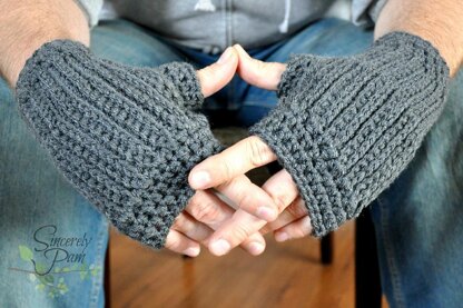 I was in need of a nice fingerless glove that my husband wouldn’t be too embarrassed to wear in public. I have a “Manly Man" who 100% supports my Designing, but would not be caught in public wearing any of it. Lucky girl, huh? Well, I did it! Here is the one item I made that he gladly wears to work, in front of his friends ;)