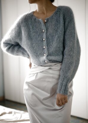 Tea Time Cardigan is a simple raglan cardigan. It features deep armholes and a slightly oversized body, balanced by fitted cuffs. It is worked seamlessly from the top down featuring a minimal buttonhole band. The neckline is shaped with increases and no short rows are used. This design works best with shank or jewel buttons.