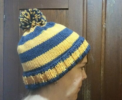 This self-striping yarn making this beanie work up quick and easy, a perfect beginner's project.