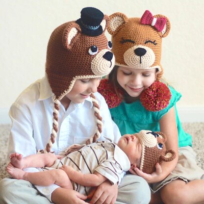 This pattern provides many options! You can make a mama, papa or baby bear hat. You can top off with a bow or top hat, make with or without earflaps, and choose between twists or pom poms! If you have any questions as you are making your hat, I would be happy to help and my email is listed on the pattern. This comes in PDF format and is 14 pages long.