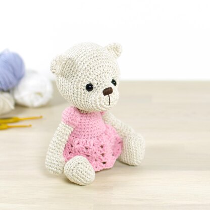 This cute 4-way jointed teddy bear in a girly lace dress is not too difficult to crochet, but does require some patience.