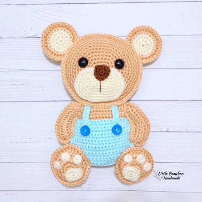 Written in English using US terminology. Materials: • 4 Ply Fingering Acrylic Yarn / Milk Cotton Yarn - Camel brown - Dark brown - Beige - Light blue • Crochet Hook Size 3 mm • 13 mm safety eyes ( 2 ) • 12 mm blue button ( 2 )