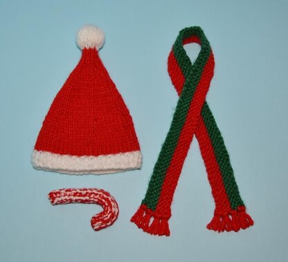 | One size only: | Christmas hat: 15cm or 6 inches long- 10cm or 4 inches wide. Scarf: 44cm or 17.25 inches long- 2.5cm or 1 inch wide. Candy cane: 7cm or 2.75 inches long |