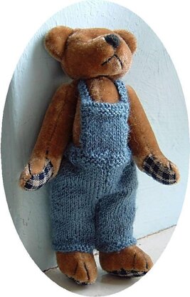 Knitting pattern for dungarees and trousers to fit a 4 inch/10 cm tall Teddy Bear.