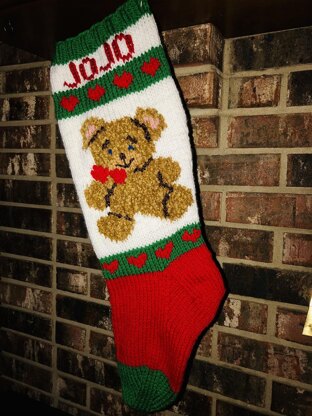 Pattern includes: Written stocking instructions, alphabet chart, hints and a color chart of the design.