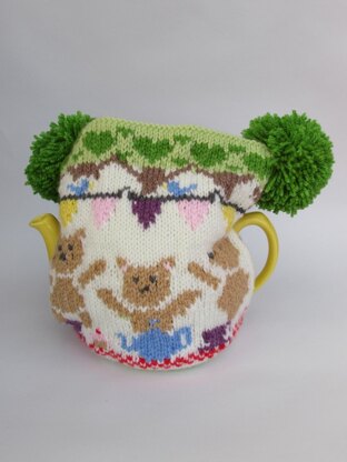 The Teddy Teatime Tea Cosy is the perfect tea cosy for any teddy bear lover. The main part of the cosy is knitted in fair isle with the yarns carried at the back of the work. The main cosy has a knitted lining to keep the teapot really hot.