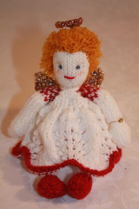 The Teeny Tiny Angel is proud to take her place on the Christmas tree. She is a tiny little girl, standing a mere 4" tall but with her shiny wings and cute red shoes she will certainly be noticed. An easy knit this wee ornament is the third in the Teeny Tiny series that are being released in time for Christmas. Fingering yarn is used to create this little doll. She can be knit in a heavier weight yarn but she will be larger in size. Complete instructions are given to create this design and it is sure to be a joy to knit.