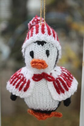 Teeny Tiny Penguin is certainly the best dressed bird on the tree!Decked out for Christmas in her candy cane cape and toque, she is sure to bring smiles to those who set eyes on her. She is an easy knit with the striped colourwork on the toque and cape being the only difficulty.