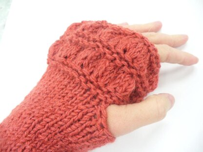 these little mitts are knit in the round in stockinette with some beautiful rutching at the top to livin them up.
