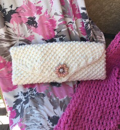 This cute 14" clutch is loom knit on a CinDWood 1/2" gauge loom using a bulky yarn.