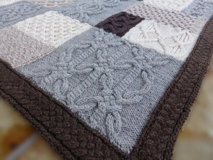Made in 5 sections which only require vertical seams, and separate seamed borders. Smaller throws can be made by choosing which adjacent sections to make - the centre three sections will create an approximately 40" square throw.