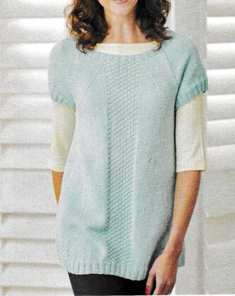 This is a pattern for a Textured Tunic, originally published in Simply Knitting. It is a tunic shape with short raglan sleeves, flared a the hem with a textured central panel and triangular shaped textured panels at the sides. Photos Simply Knitting.