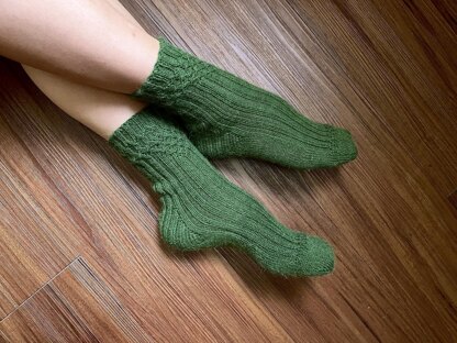 That Macrame Sock is a stretchy ribbing-like sock with some mock cables. While the ribbings align lovely along the feet, the crossings around the ankles create a macrame-like shape as if the ribbing ropes were hang on top.