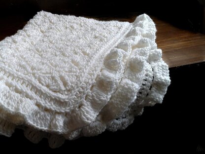 The Adelia Baby Blanket Pattern creates a beautiful lace blanket that is reminiscent of the Victorian style. It is made using worsted weight yarn, and was designed to be an easy and quick lace blanket pattern for those who do not have much experience (or patience) with lacework. The main body is a repeating shell stitch and the border uses slip stitches to give it a unique braided look.