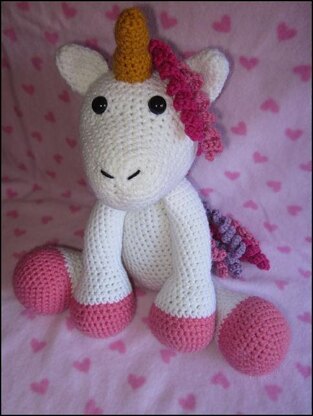 You will need… All yarns used are Red Heart Super Saver Solids Yarn Color MC (White) Yarn Color A for hooves and hair (Perfect Pink) Yarn Color B for hair (Orchid Yarn Color C for hair (Shocking Pink) Yarn Color D for hair (Vanna’s Choice in Pink Poodle) Yarn Color E for horn (Gold) Black yarn to embroider nostrils 15mm safety eyes 3.25mm crochet hook (Size D) Fiberfill Stuffing Yarn Needle Sewing Pins to hold pieces in place before sewing (optional) Stitch Markers
