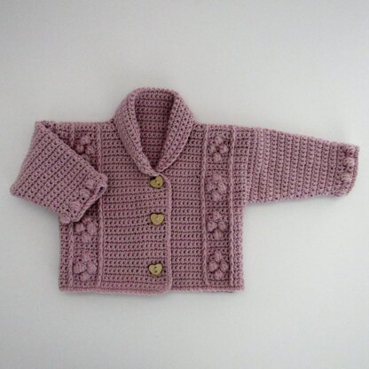 The Ava Jacket is crocheted in DK yarn and 4.00mm hook. The main part of the jacket is crocheted in double crochet (single crochet). A textured panel is worked on the right and left fronts. A row of cluster stitches is worked around the cuff for added detail.