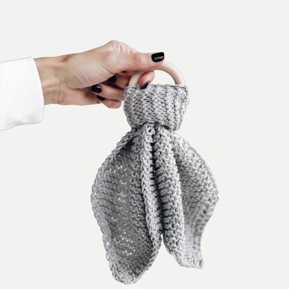The Bambino Lovey features a diamond shape, bunny ear-like appearance. Attach to a bamboo or silicone teething ring for that special baby in your life. Made from cotton, easily wash this lovey when it becomes "too loved". Fun fact: Bambino means "baby" in Italian.