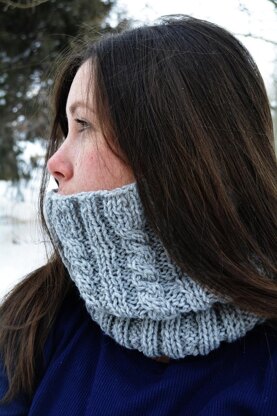The Bern Cowl is a classic cabled design that pretty much goes with anything in your wardrobe. It's a slightly tighter fitting cowl--it doesn't hang around your neck, but hugs it. It's a fast and easy cable project, great for beginning knitters who want to start trying out cables for the first time. Instructions are easy to follow and clearly explain how to do each stitch. This cowl was designed to go with the Bern Hat.