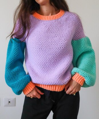 There, I said it! This crochet sweater pattern is just BETTER! Introducing The Better Sweater (worsted weight), a totally unique crochet pattern that produces the softest, slouchiest, most seamless crochet sweater you've ever made! On top of how beautiful it looks with modern, trendy color blocking and a slouchy dropped shoulder fit with billowy balloon sleeves, the construction of this sweater is what sets it apart from others.