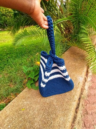 This pattern covers how to crochet step by step a blue bucket bag with a Japanese knot. This bag is crocheted using single crochet and slip stitch. No additional accessories are required. The size of the bag can be adjusted by adjusting the base of the bag as instructed in the pattern.