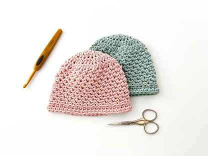 The Brice Beanie is a quick and easy crochet pattern that creates a lovely texture. This pattern is offered in sizes newborn-12 months, making it perfect for baby shower gifts or charity work. Written in US crochet terms.