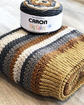 I started this blanket because I couldn’t get the idea out of my head to have a simple afghan with beautiful knit-look ribbed edges. This is an advanced beginner level pattern that requires some patience with the ribbing and knowledge of basic crochet stitches. The main body of the blanket is brainless and very easy to do while watching TV. I recommend an Aran weight/Heavy worsted to achieve correct gauge. For my sample (the Man-Ghan) I used 5 Caron big cakes - 3 Tiramisu and 2 Cookie Crumble - and alternated them throughout the length of the blanket. The pattern is written in US crochet terminology and has grading included for 7 size options from receiving blanket to king size.