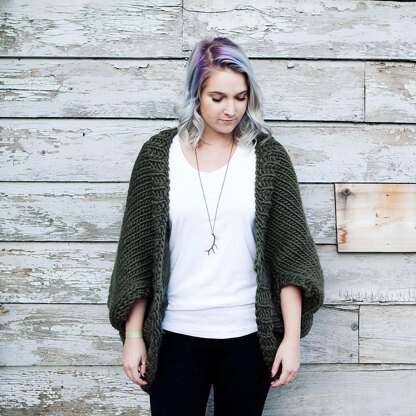 DESCRIPTION: Chunky, oversided, slouchy... bumhugging bolero is perfect for the tight lover and pant hater in us all. Perfect to slip on when it gets nippy, or to lounge in during the your next epic netflix, knit and chill night.