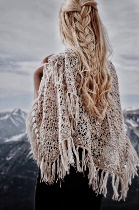 > PDF is a highly-detailed PDF containing written instructions, a knitting chart, tutorial photos, stitch glossary, row-by-row stitch count, a schematic with precise measurements, and more! > Features: A classic square shawl, with a neck slit/opening for easier wear and featuring Estonian-inspired knitted lace and details that are worked throughout, leaving zero negative space, with fringe/tassels added to the entire bottom of the shawl. > Process: Seamlessly knitted flat top-down > Skill level: Intermediate