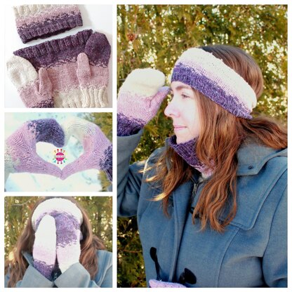 Cowl dimensions: 22,5 cm wide x 24 cm tall Headband dimensions: 19 cm wide x 11,5 cm tall Mittens dimensions: 9 cm wide x 23 cm tall