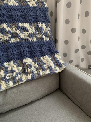 This is a pattern for a quick and easy blanket that would be great for a baby or toddler or to be given as a gift. The yarn used is thick, warm, and chunky, making this an irresistible blanket for an littles in your life! Prepare for endless snuggles after you work this piece up! *This listing is for a downloadable pattern PDF, not a finished piece. Pattern is written in standard American terms and includes an abbreviation key and a material list. This is an intermediate beginner crochet pattern. A knowledge of basic crochet skills and terms is a plus. Hook: 9mm Gauge: 4” = 9 sts x 7 rows in stitch pattern Size: 39" x 47" Pattern calls for Bernat Blanket yarn but any Super Bulky-6 yarn can be used.