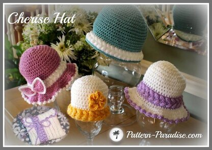 Pattern includes instructions for both brims, a bow and a flower applique.