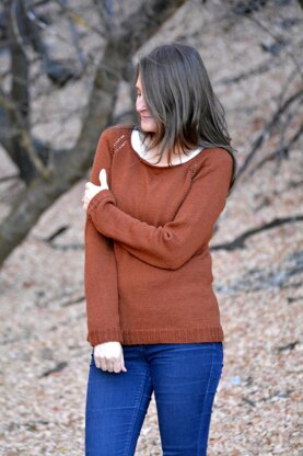 Made out of fingering weight yarn, this sweater is a slight twist on the basic raglan design. Simple lace increases are used to decorate the raglan increases, and the hems are not your usual rib pattern. There are waist shaping instructions included in the pattern as well.