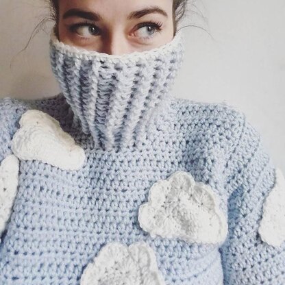 This crochet pattern is for a playful, comfy, cloud turtleneck. Sure to keep you extra cozy and remind you of blue skies during the gray winter.