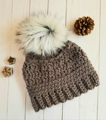 The coffee beanie is a fun, semi easy, one skein, one hour, chunky beanie pattern for women and features a removeable pom. Perfect for the last minute gift. Stylish and warm. The size can be modified with a different hook size or by adding or subtracting rows of the beginning ribbing.