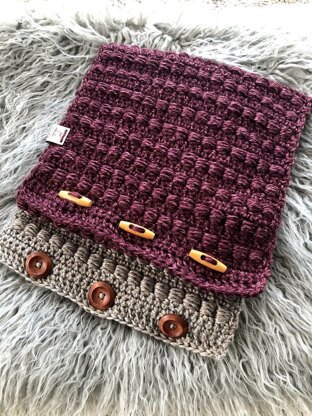 Materials • Yarn: Lion Brand Heartland (301 yds) • Hook: I/5.50 mm • Notions: 3 buttons of choice, Scissors, Blunt needle for sewing Sizing • These measurements are approximated, use whichever hook size you need to obtain gauge. • Gauge: • The finished size is 25” x 11.5”